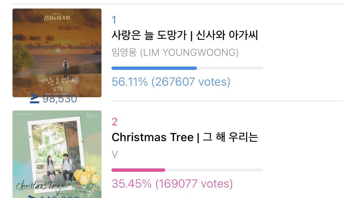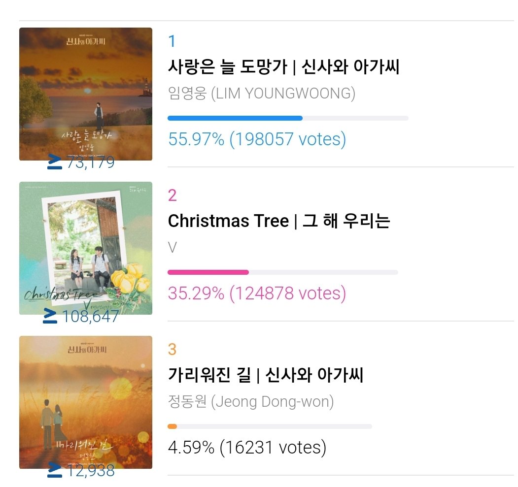 Please vote daily 'Christmas Tree' for Best OST at the SDA, It is currently in 2nd place with 100k GAP!! Taehyung worked so hard for this so please let’s win this for him!! 🙏