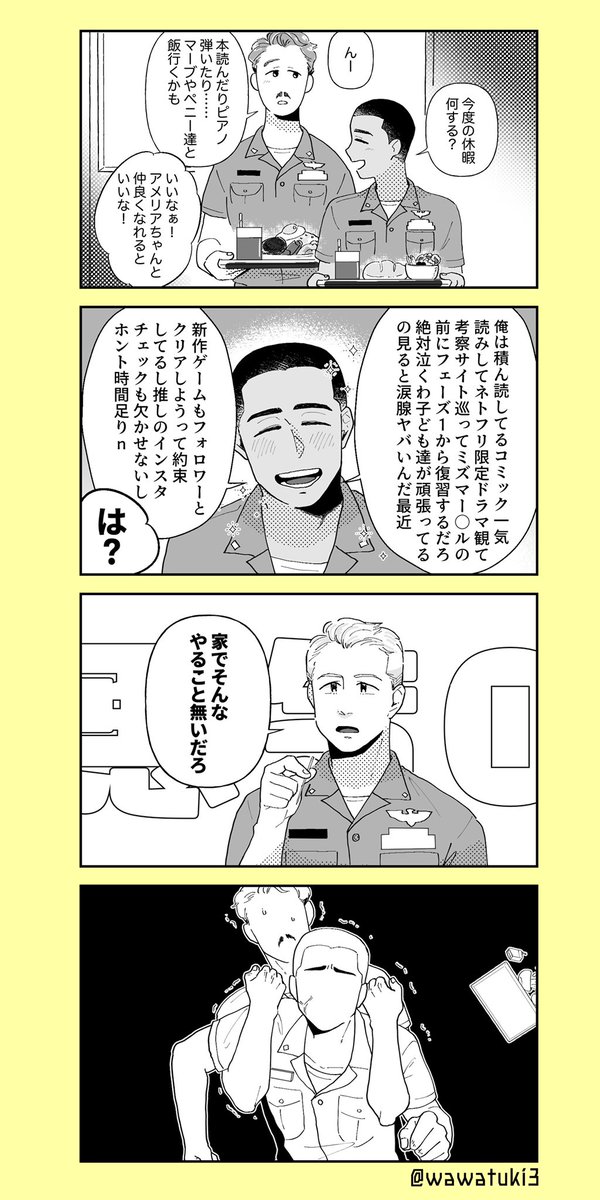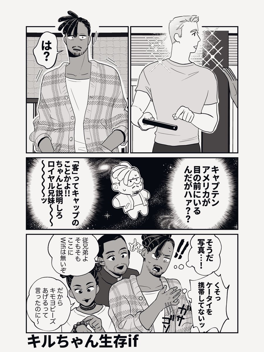 キルちゃんはアメリカ生まれアメリカ育ちだからキャップのファンだと私が嬉しいなっていう漫画。ほのぼの生存アース