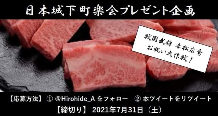 素晴らしいご兄妹の活躍に気前良くなった兵庫県の戦国武将が故郷の但馬牛を抽選で1名様に贈らせていただくで!