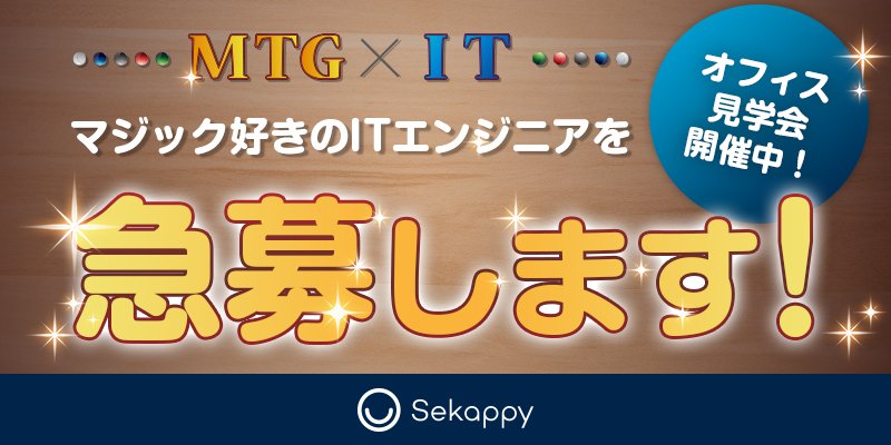株式会社Sekappyは、社員全員がマジック:ザ・ギャザリングを愛するIT企業です。設立から1年が経ち、二期目の現在では40名の体制となりました!私たちはマジックを嗜むITエンジニアの可能性を強く感じており、まだまだ一緒に働く仲間を募集しております!