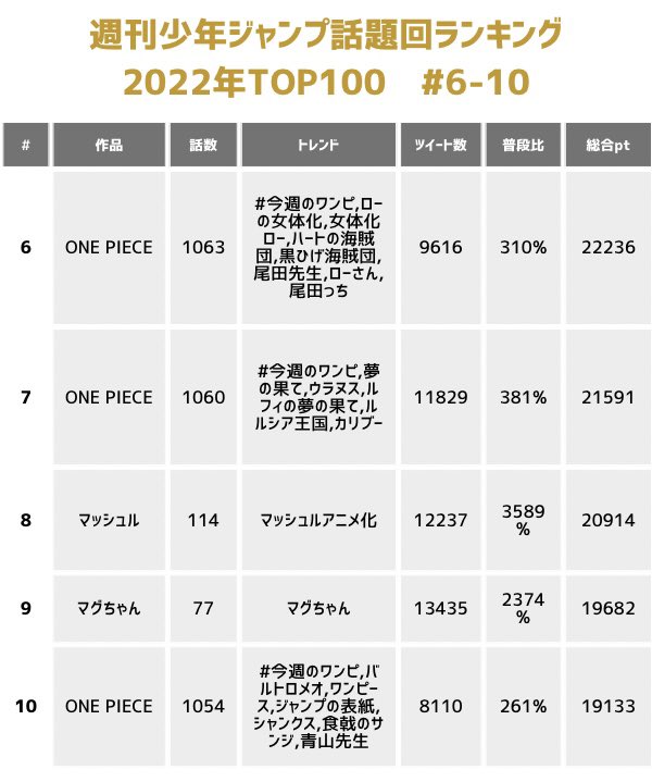 #週刊少年ジャンプ話題回ランキング2022