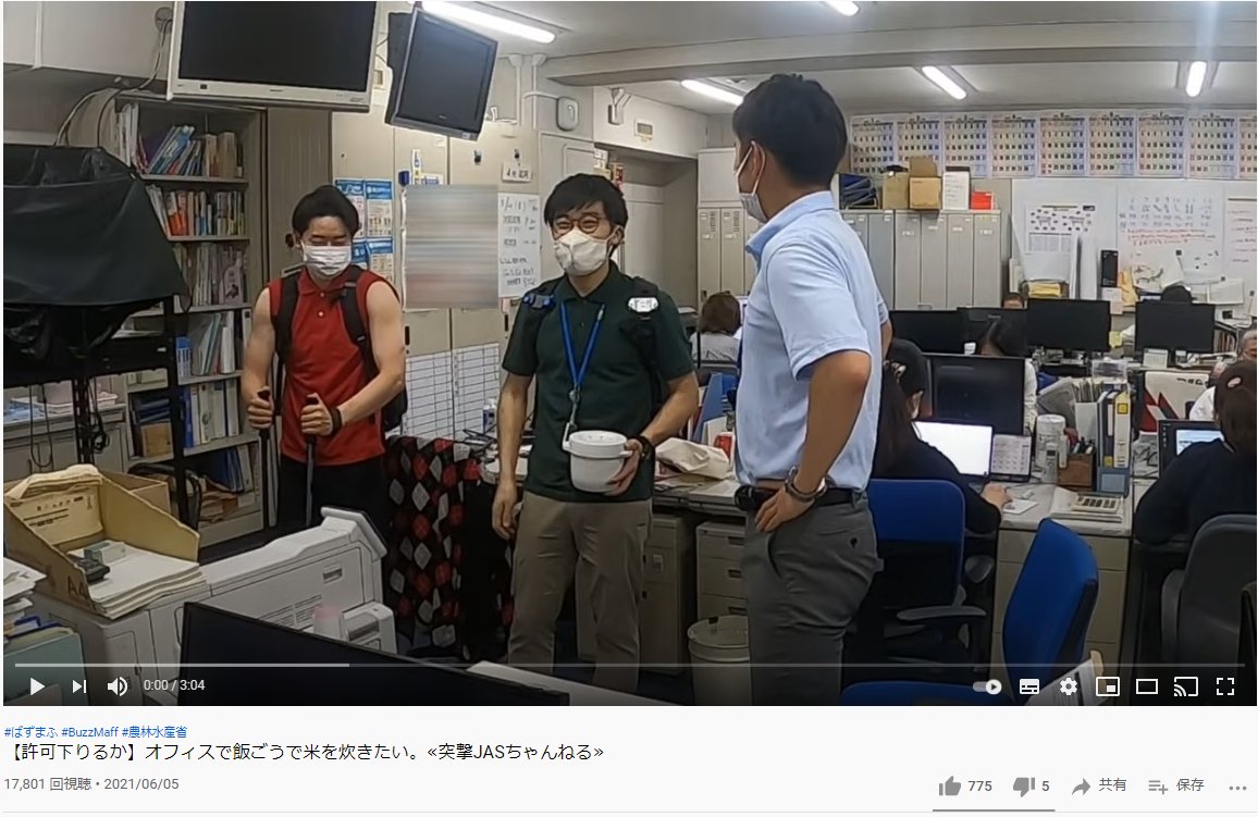 【許可下りるか】オフィスで飯ごうで米を炊きたい。≪突撃JASちゃんねる≫ youtu.be/b7sZWGqiR6Q @YouTubeより