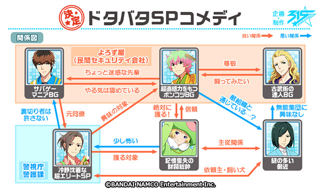 プロデューサーさん、第6回公演「ドタバタ・ガーディアンズ〜嵐の七日間〜」の相関図をお見せしますね!