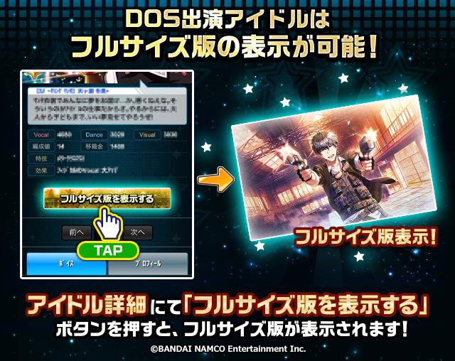 プロデューサーさん、「315 DRAMA ON ST@GEキャンペーン」の特別ミッションと「怒涛のスラップスティックガシャ」でスカウトできるDOS出演アイドルは、フルサイズ版を表示できますよ!