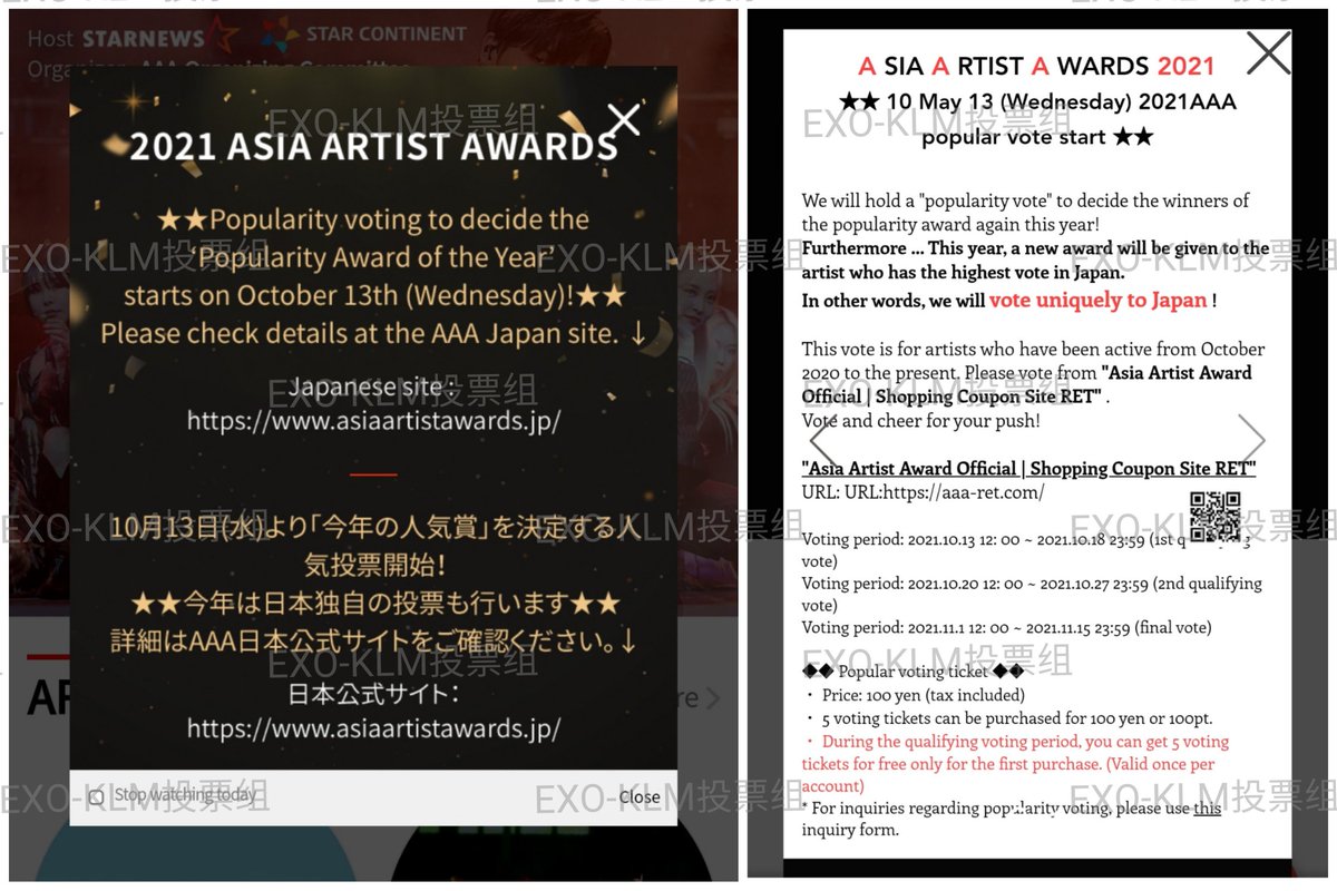Hi EXOLs, according to AAA website update, AAA Popularity Award will have 3 rounds of voting on the JP website starting from tomorrow.