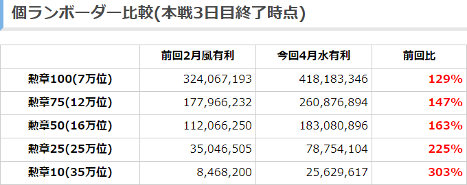 【グラブル】2020年4月古戦場個人ランキングボーダー予想/本戦3日目終了時点 ボーダーの伸びが全体的に加速、7万位は6.1億ペース