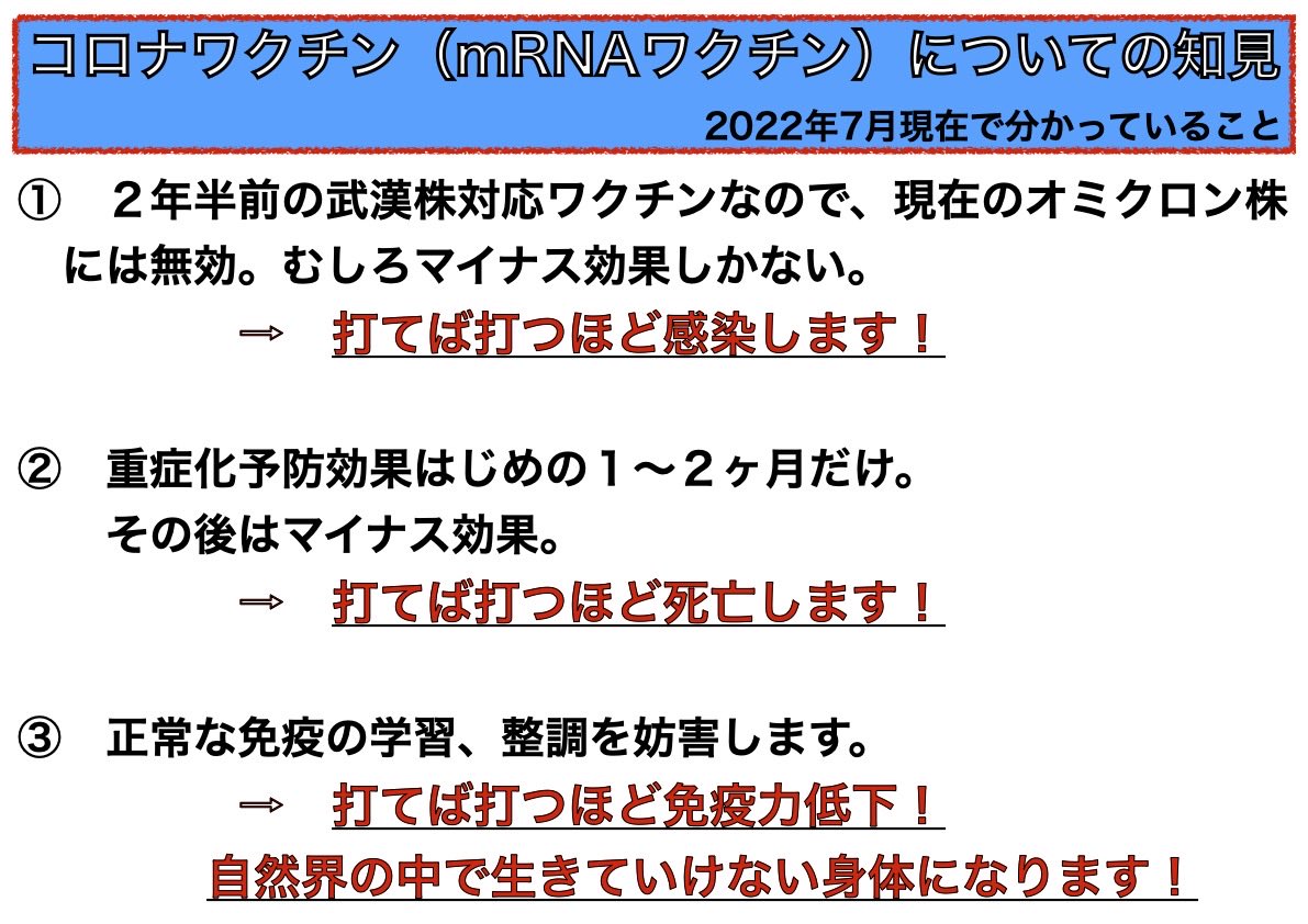 コロナワクチンを接種した方々には辛い話しかもしれない。パニックを起こすかもしれない。不安を煽ると非難されるかもしれない。… twitter.com/i/web/status/1…
