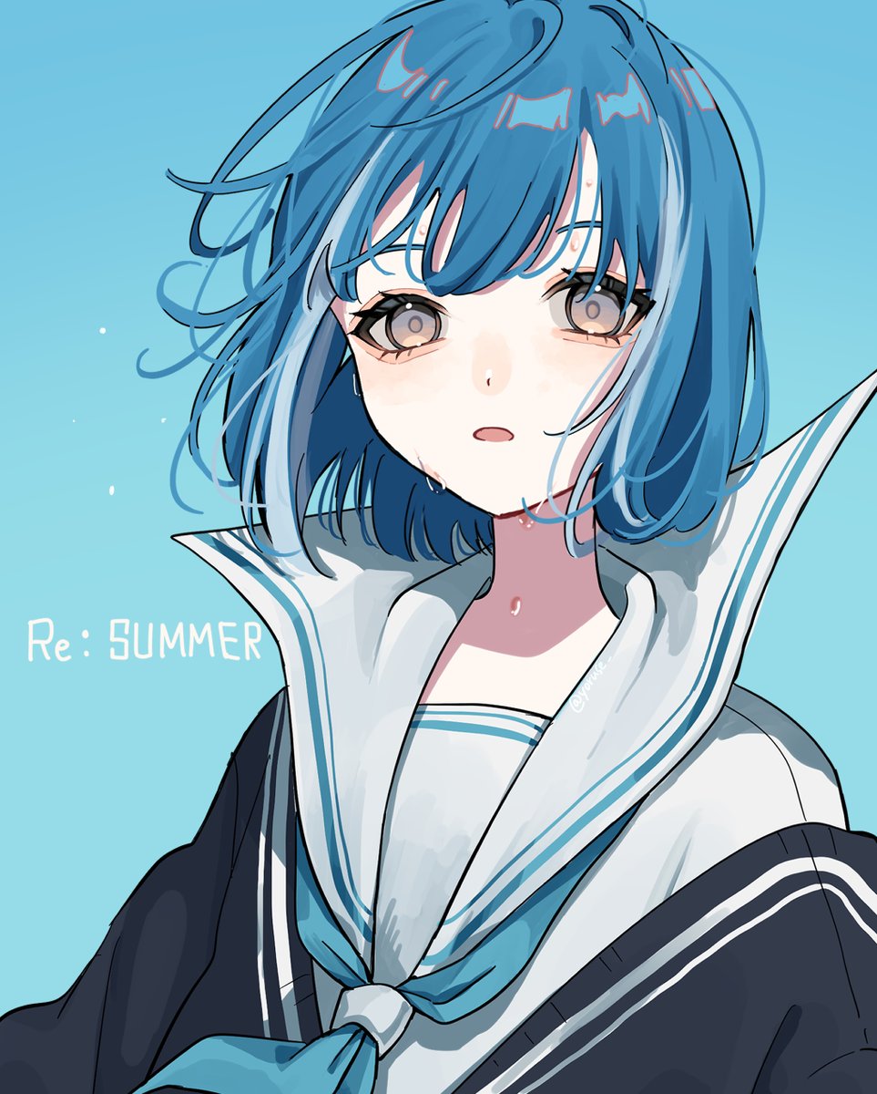 青い双子の高校生たちを描いています!