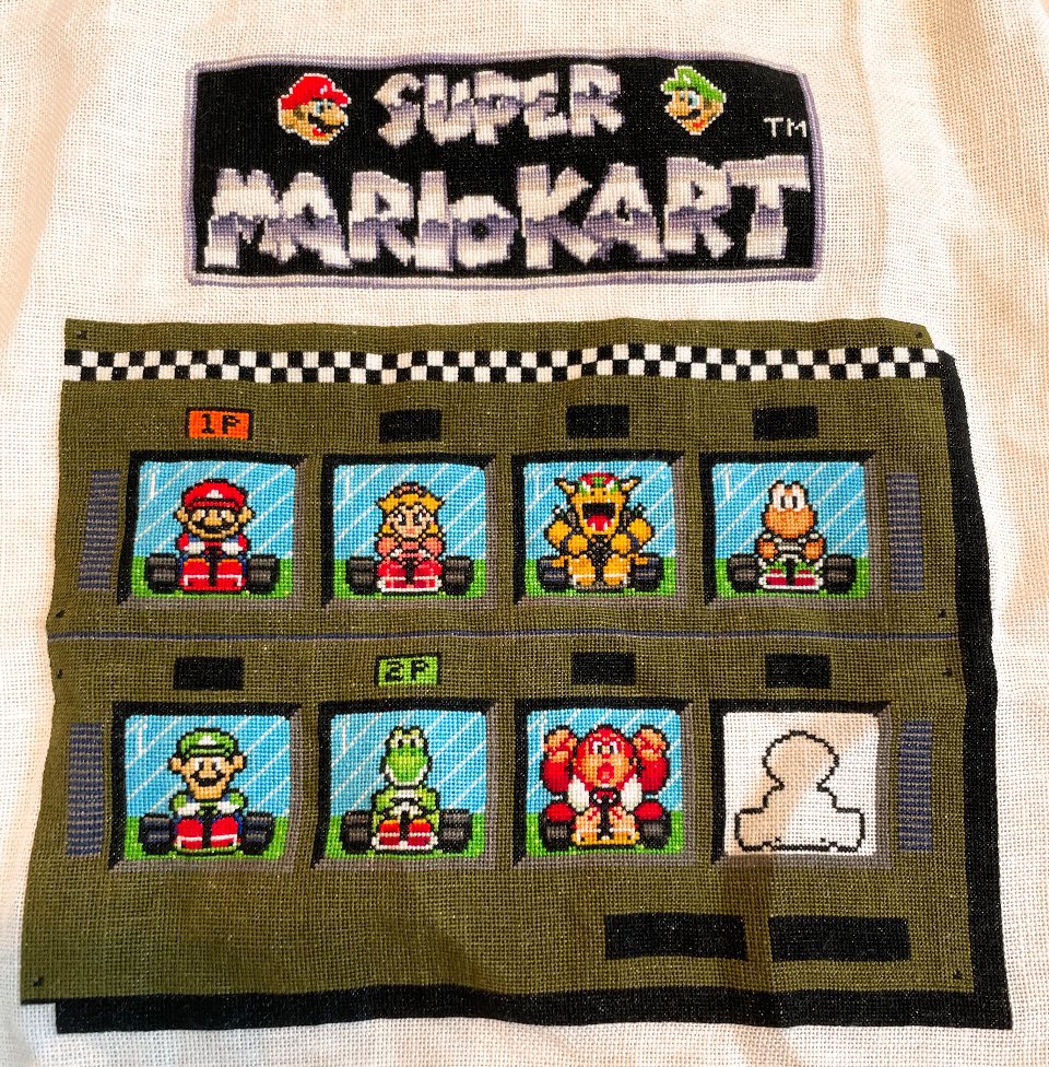 ご無沙汰しておりますがマリオカートの刺繍ももう終わりを迎えようとしています🥺