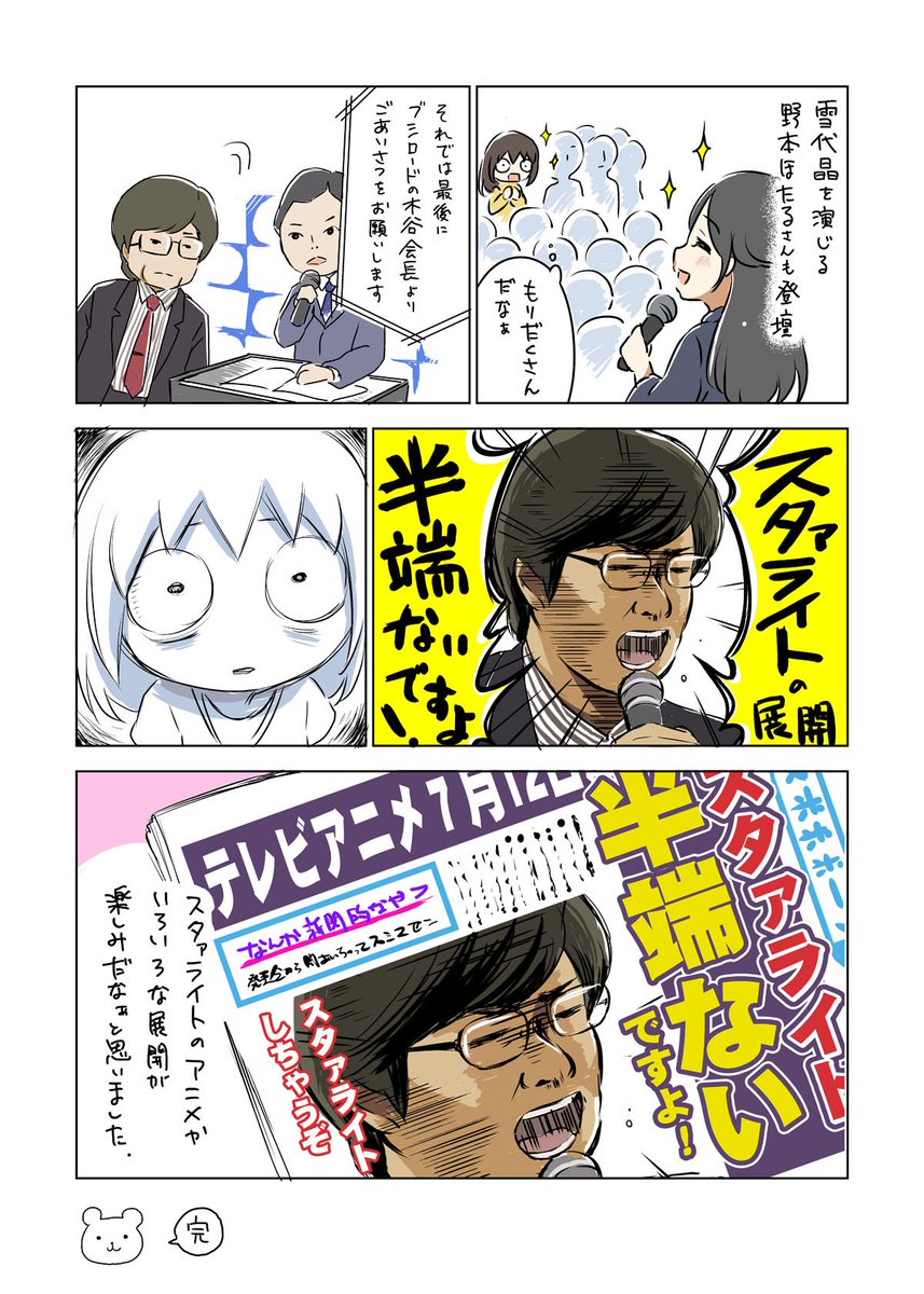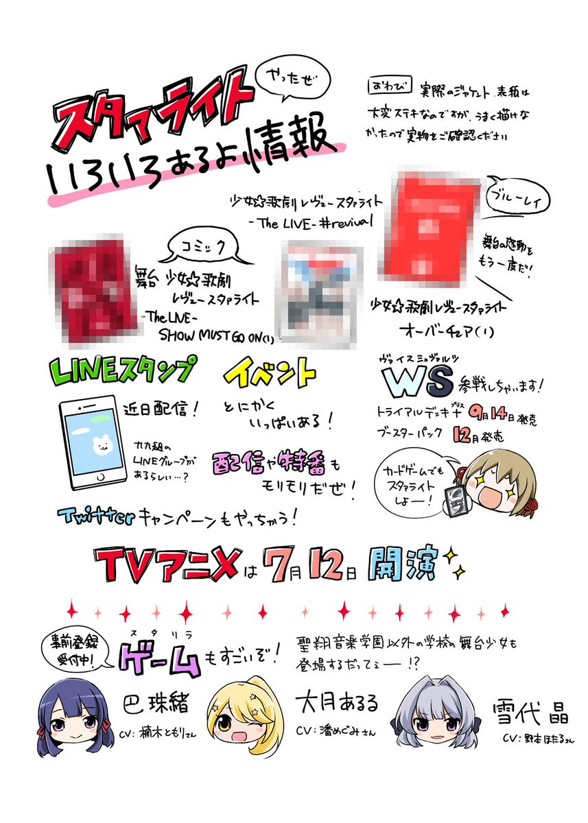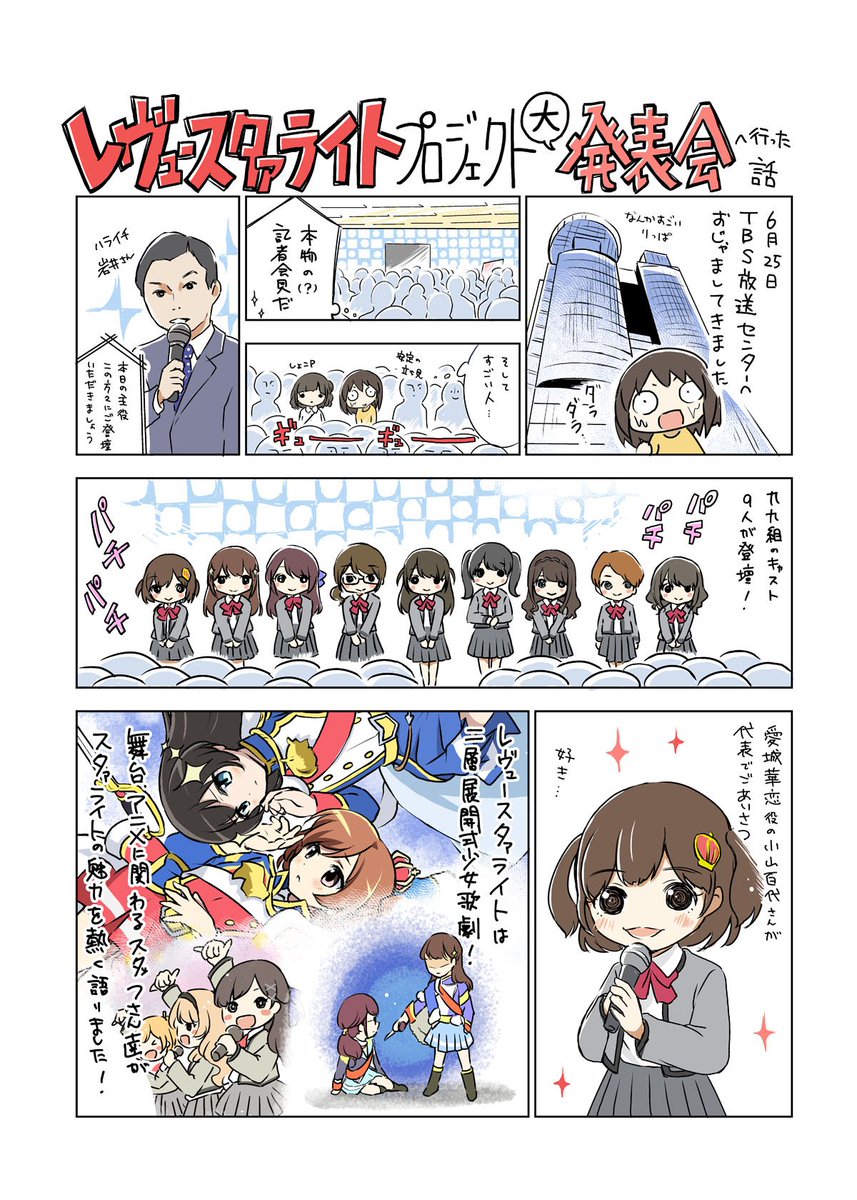 いよいよ今夜TVアニメ「少女☆歌劇 レヴュースタァライト」が放送スタート! ということで、舞台創造科の一員として先日開催されたプロジェクト大発表会のレポートを描きました!! #スタァライト