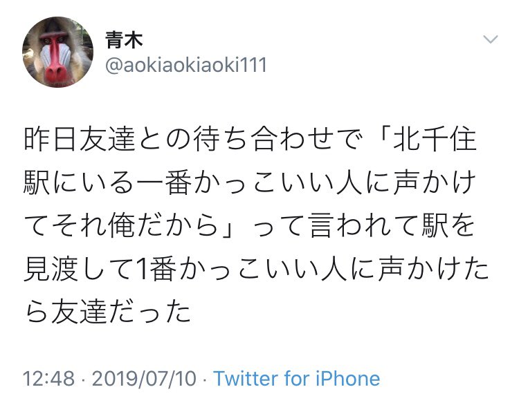高校の時1番仲良かった友達2人と久しぶりに遊んだんだけど、どんな小さいボケでも全部ツッこんでくれるし、「こんなこと言って青木を調子乗らせたくないんだけど…」って前置きした上で凄い褒めてくれるし、しまいには、2人それぞれが「俺とルームシェアしよ」と言ってくれて終始嬉しかった