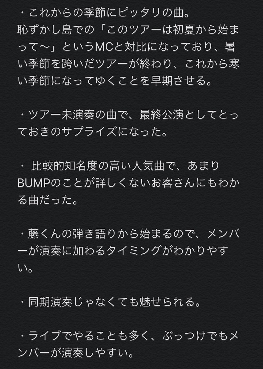 BUMP OF CHICKENを愛しています☆☆☆☆BUMP好きの方、お気軽にフォロー、リプ、DMなんでもお願いします!!無言フォローも大歓迎です!be there14公演参加しました!全公演詳細レポ書いたので遡ってみてください💡(ハッシュダク作っとけば良かったと後悔)