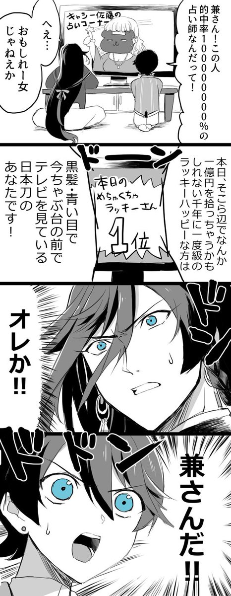 鍛刀キャンペーンだ!!!!!行くぞーーー!!!!!!って思って物凄い勢いで玄関開けたら二秒でユー〇ン審神者に出迎えられた時のこの気持ち