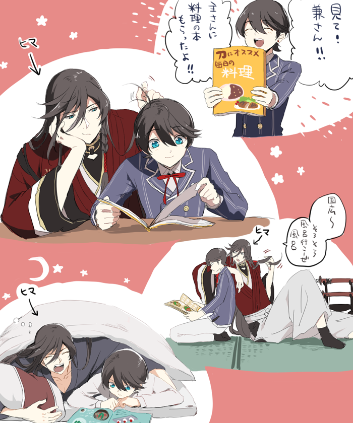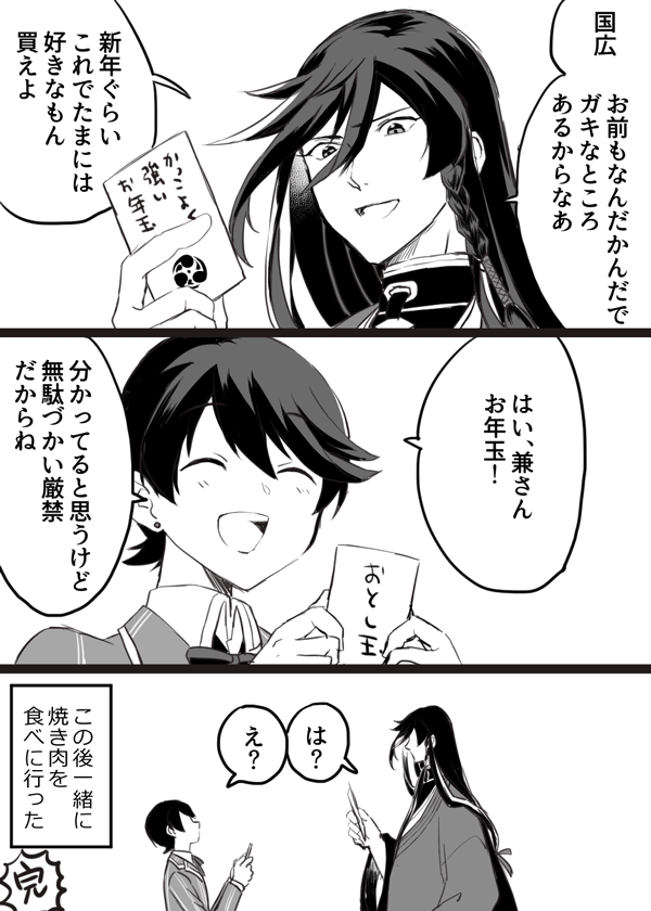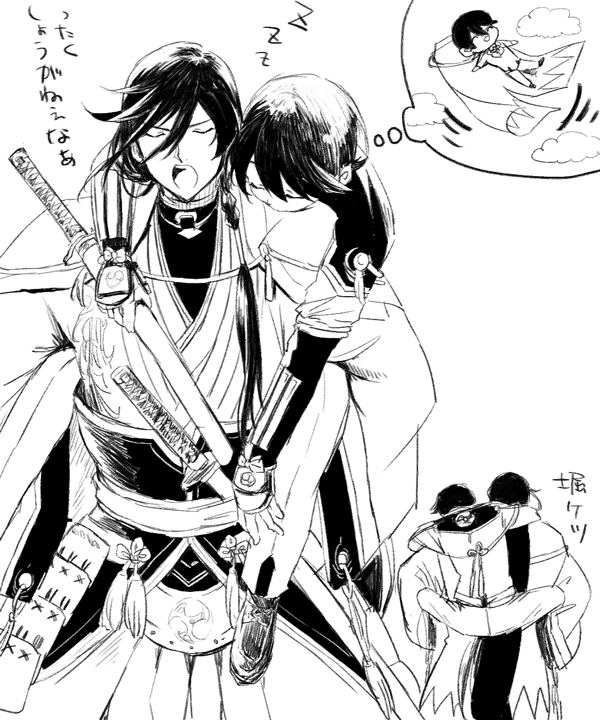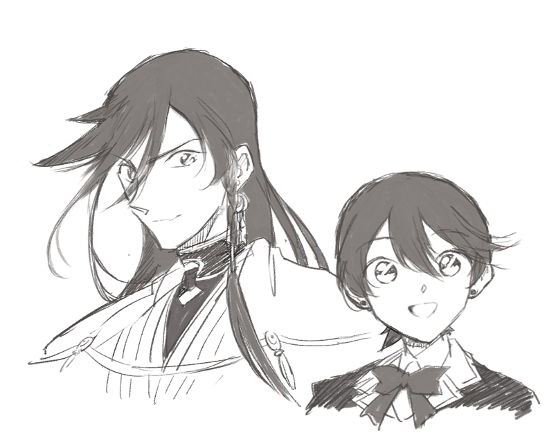 コラボするんで今から撮影しまーす!って言われて元主と同じポーズとってドヤ…してる兼さんと控えめに後ろで小説アピールする堀川くんという、相棒関係の良いところが5000000000000000%発揮されているイラストがこの世に生み出されたことについて感謝しかないし、まだ何が起こったのか分からない