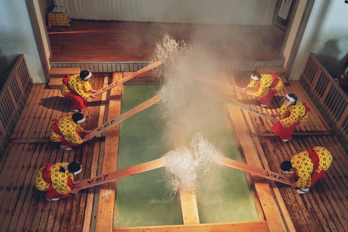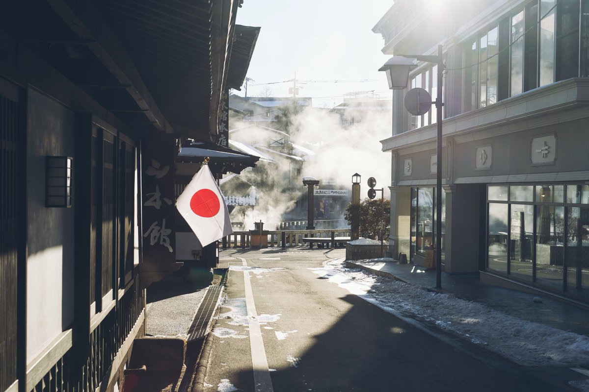 朝、草津温泉 .
