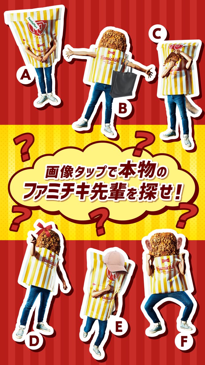 ②画像A~Fの中から「本物のファミチキ先輩」を探して、 #ファミチキ先輩を探し出せ つけて引用ツイート