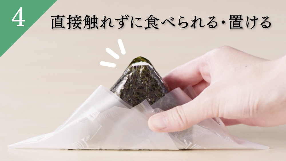 おむすびに直接触れずに食べられる!