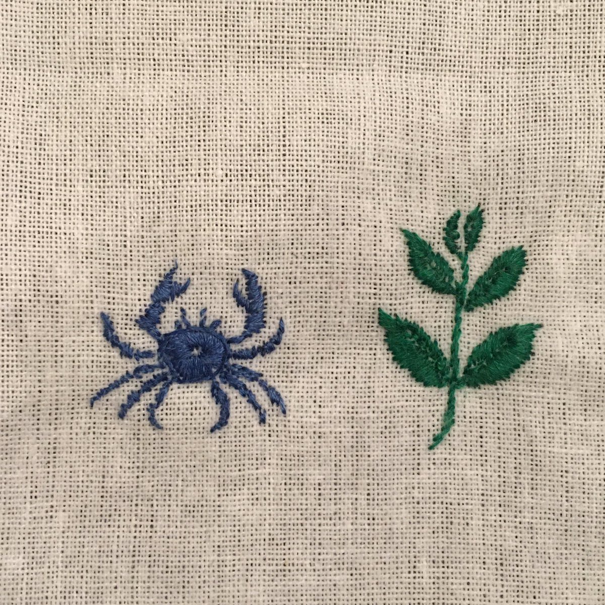 刺繍に人生初挑戦! 「でかい植物を見つけて喜ぶカニ」