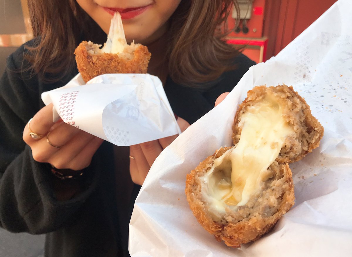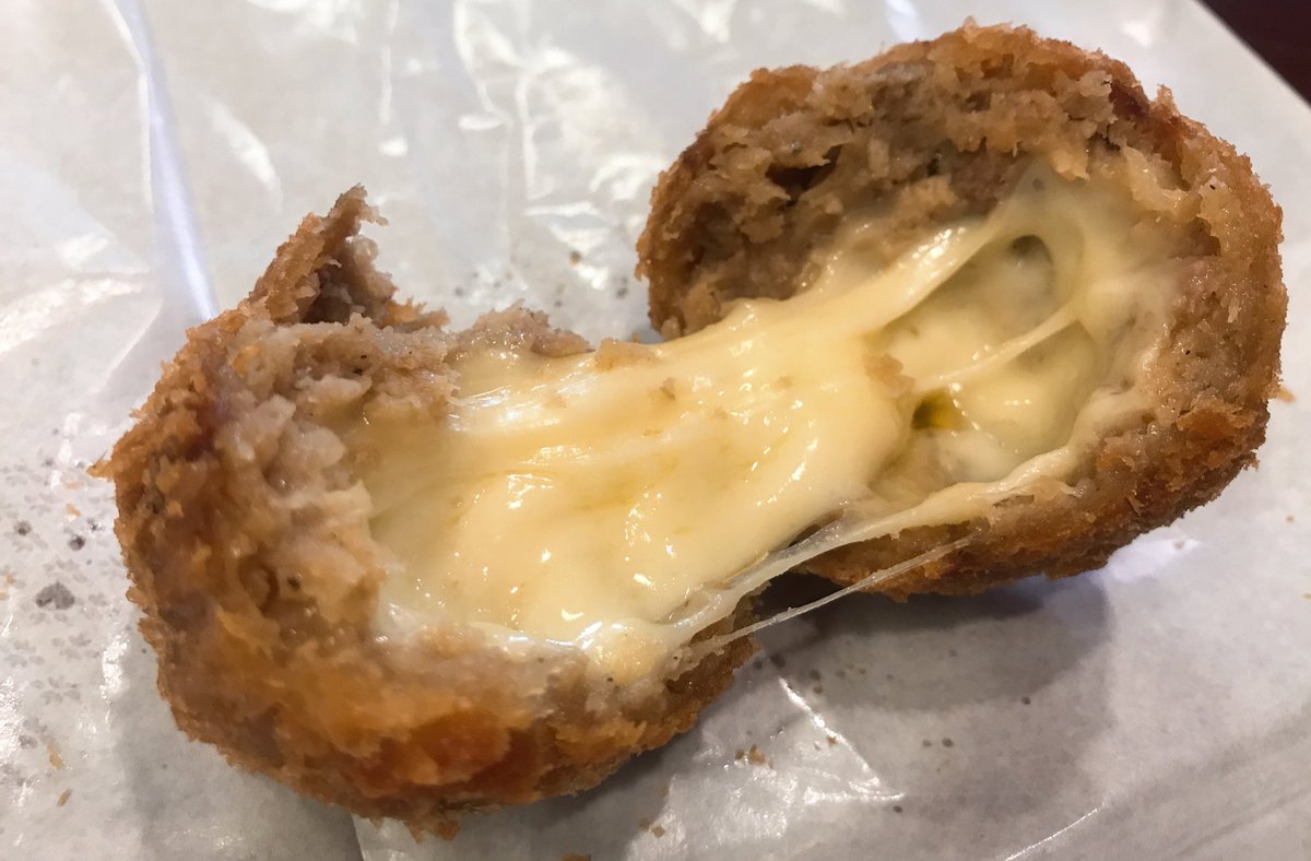 まじでこの世の全てのチーズ好きに教えてあげたいんだが浅草のくろげには全ての人間を虜にする禁断のチーズメンチカツがある。 これがチーズたっぷり超絶美味いからぜひ全国のチーズ好き、チーズを愛する者たち、チーズを憎む者たち、全てのチーズ関係者に伝われ