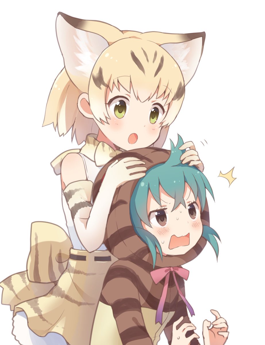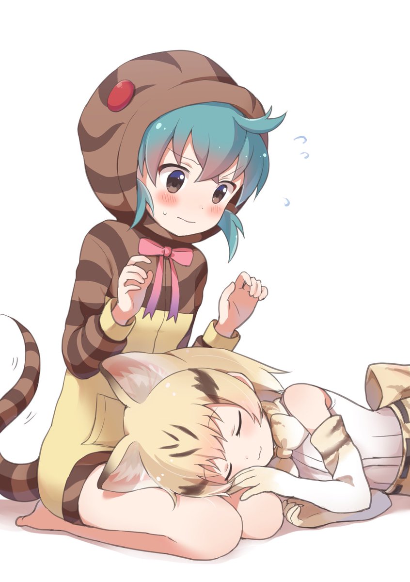 ツチノコちゃんのアホ毛(?)に興味津々なスナネコちゃん