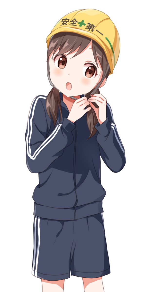 【お題箱】安全第一のヘルメットを着用した、上はジャージで下は短パン姿の女の子