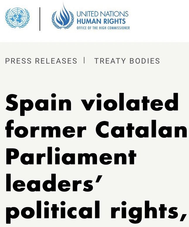UN Human Rights Committee @UNHumanRights finds that “Spain violated Catalan Parliament leaders’ political rights”.