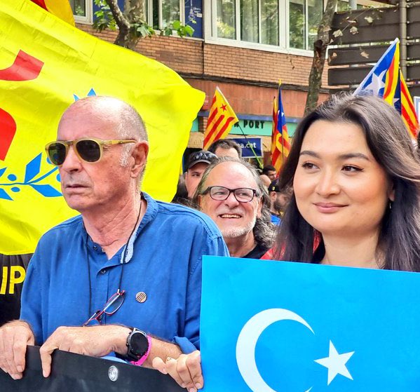 A la manifestació de Barcelona, els uigurs al costat dels catalans. Gràcies @ZumretErkin @Dolkun_Isa.