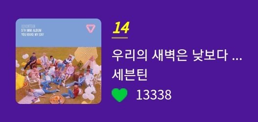 #세븐틴 의 첫번째 100일 연속 차트인 곡이 탄생했습니다. 신곡들의 진입으로 100위에 걸쳐있네요 100일을 넘어 계속해서 차트에 남아있을 수 있도록 함께 해주세요 💙