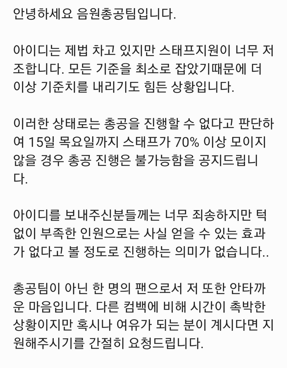 총공팀은 조력자일뿐 팬분들께서 함께 해주셔야합니다. 이번 활동도 잘 부탁 드리겠습니다.