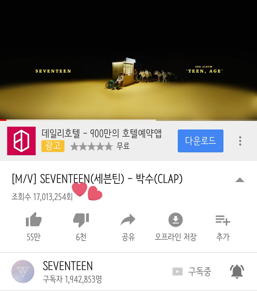 티켓팅은 잘 하셨나요? ( ´•̥̥̥ω•̥̥̥` ) 세븐틴 박수 MV 조회수가 1700만을 넘었습니다 ! 👏👏👏👏 #세븐틴 #SEVENTEEN