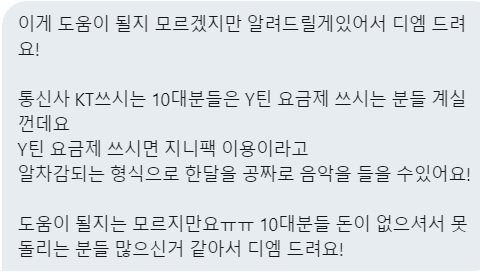 통신사 KT 쓰시는 10대분들 중 Y틴 요금제 쓰시는 분들은 지니팩 이용이라고 알차감되는 형식으로 한달을 공짜로 음악을 들을 수 있다고 합니다! 제보해주신 캐럿님 감사합니다❤️ #세븐틴 #SEVENTEEN