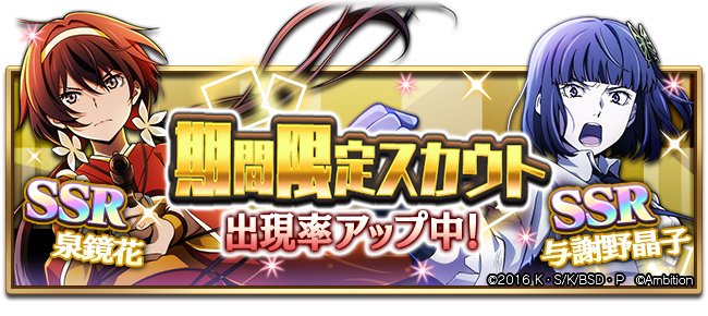 【スカウト情報】本日レアスカウトに追加となった新キャラクター4人の、期間限定ピックアップスカウトも開催中です! #bungomayoi