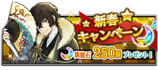 運営チームからのささやかなお年玉といたしまして、本日0時から、全ユーザー様に「異能石250個」をプレゼントしています♪