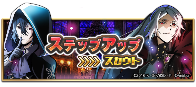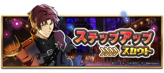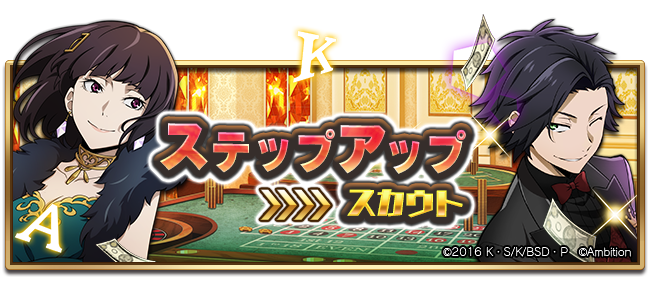 STEP3でSSRキャラクターが1体確定、STEP5で「SSR[仮装招宴]織田作之助」を確定で入手できるステップアップスカウトです!更にSTEP6以降はSSR出現率1.5倍♪ #bungomayoi