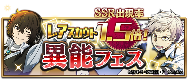 「異能フェス」では、SSRキャラクターの出現率が通常の1.5倍!
