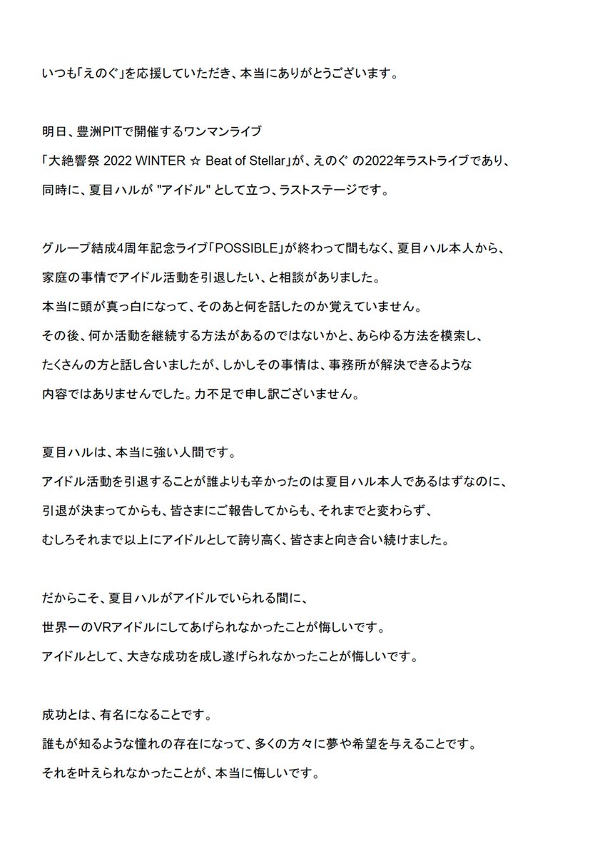 2年前これがなかったら、えのぐも生まれてないし、5人でメジャーデビューもしてないし、DMM VRシアターで1周年ライブもしてないし、TIF2019にも出演してない。美化するつもりは全くないし黒歴史であることは間違いないけど、この時から全力で前だけ見て走ってきた自負はある