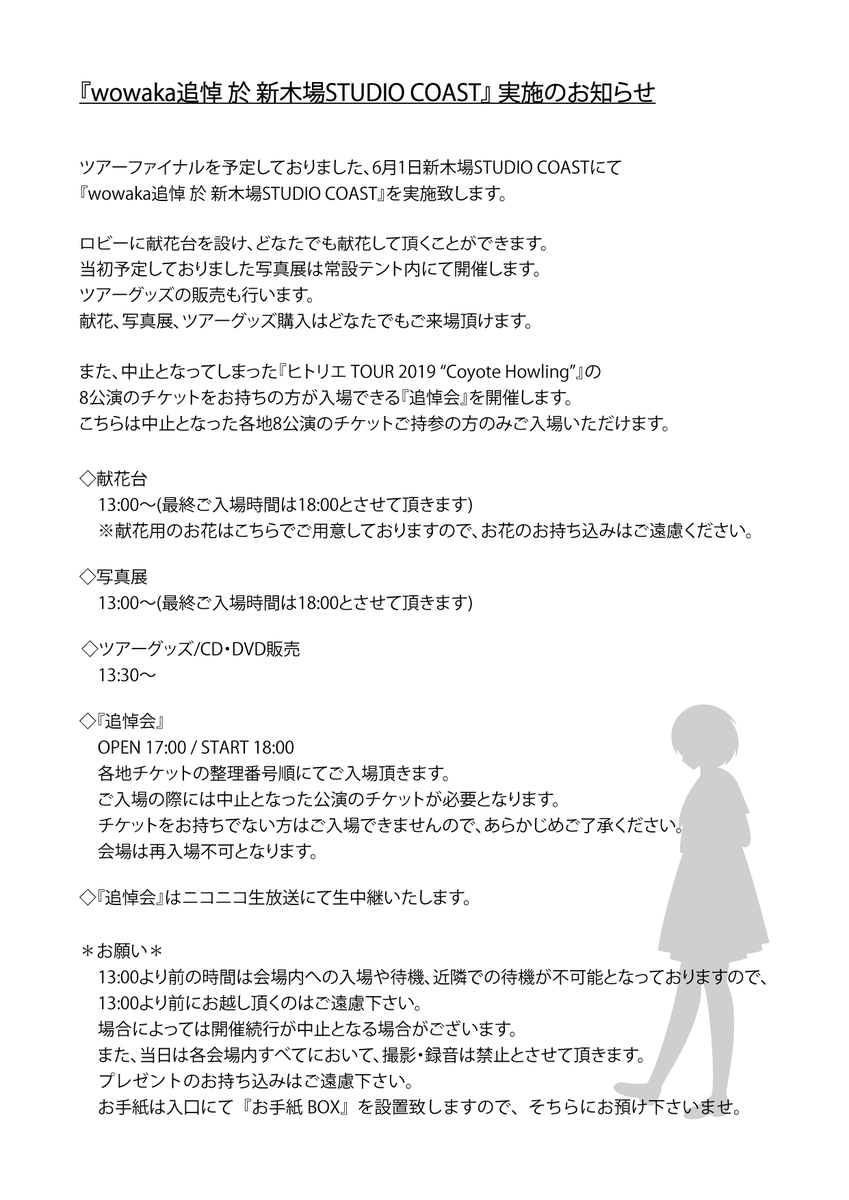 『wowaka追悼 於 新木場STUDIO COAST』実施のお知らせ