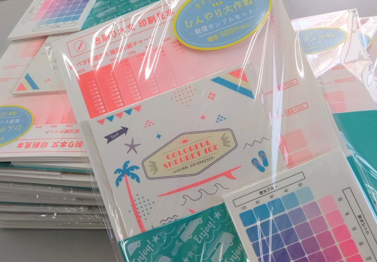 カラフルかき氷(sunrisep.co.jp/02_book/kakigo…)で使える用紙、インクの組み合わせになっているので、作成時の参考にしてみてくださいね~!