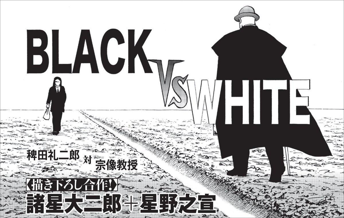 諸星大二郎+星野之宣の描き下ろし合作マンガ「BLACK vs WHITE」では、稗田礼二郎と宗像教授が夢の対決を繰り広げます!