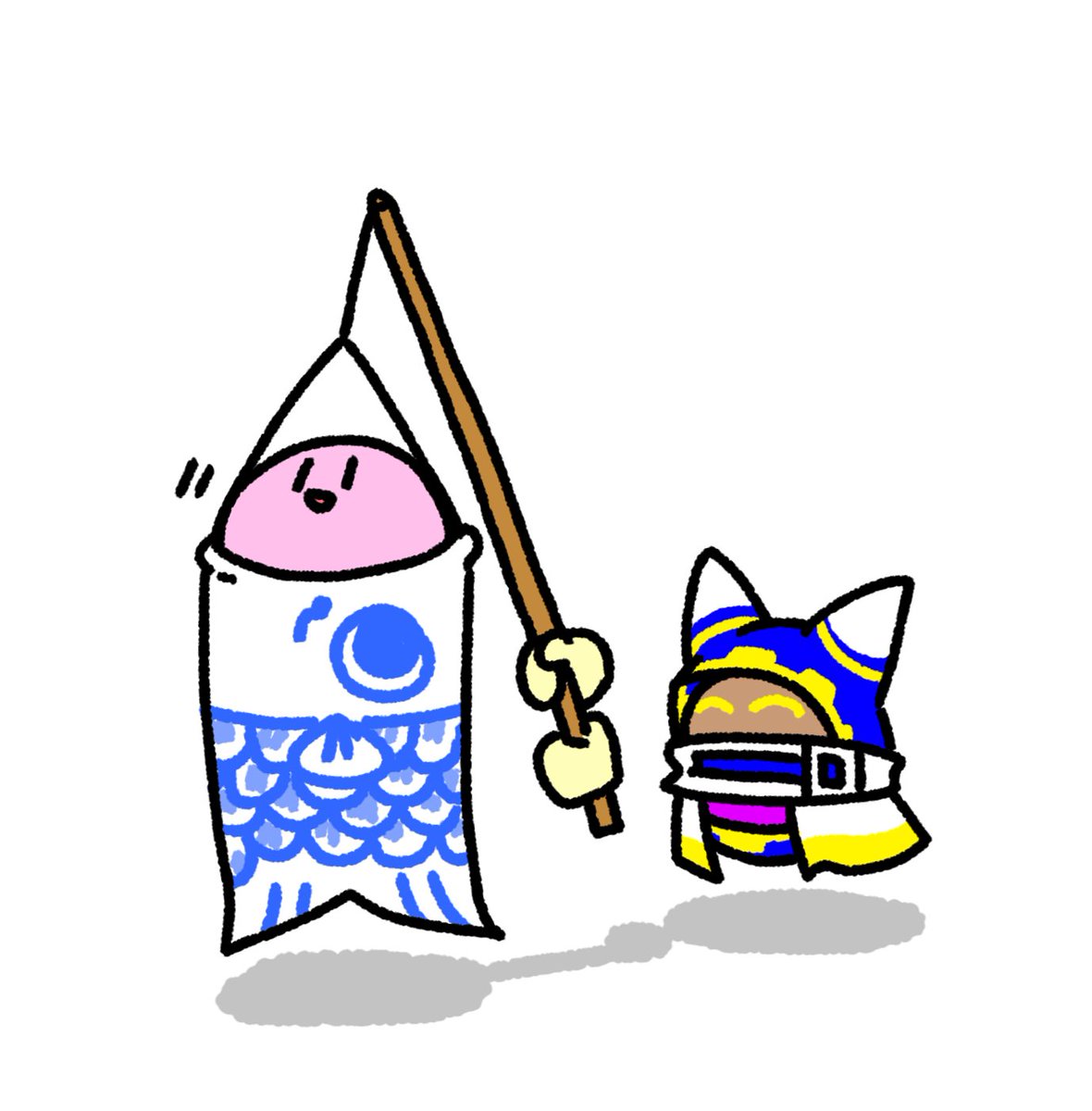 こいのぼりとカービィちゃんとマホロアくんです