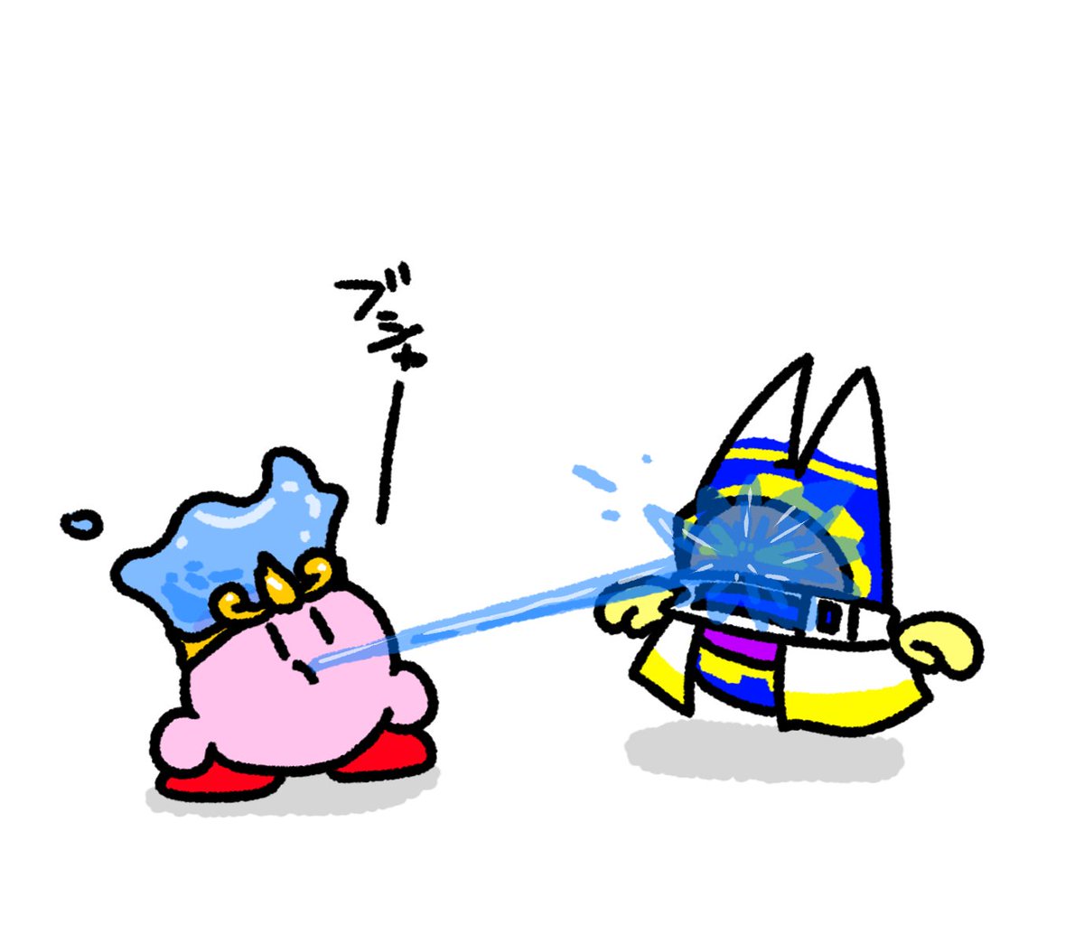 水を吐くカービィちゃんとマホロアくんです