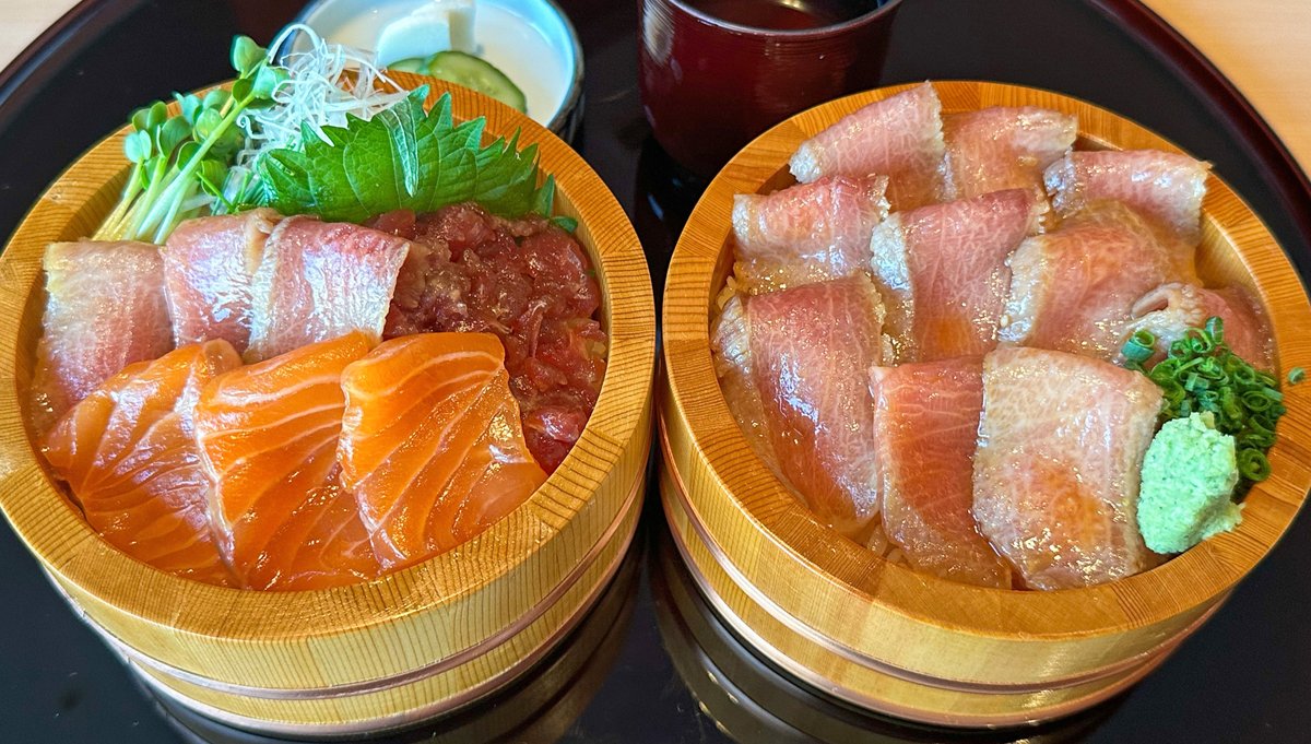 とろける中トロや脂乗りの良いイワシ、ニンニク醤油で味付けしたサーモン丼を堪能できます🍚#PR