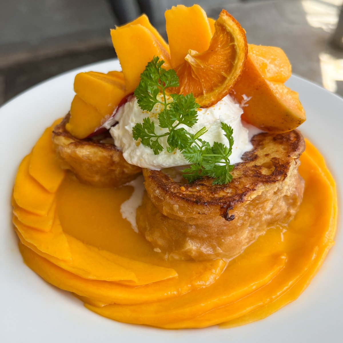 桃を丸ごと1個使ったフレンチトーストを食べられるカフェ。