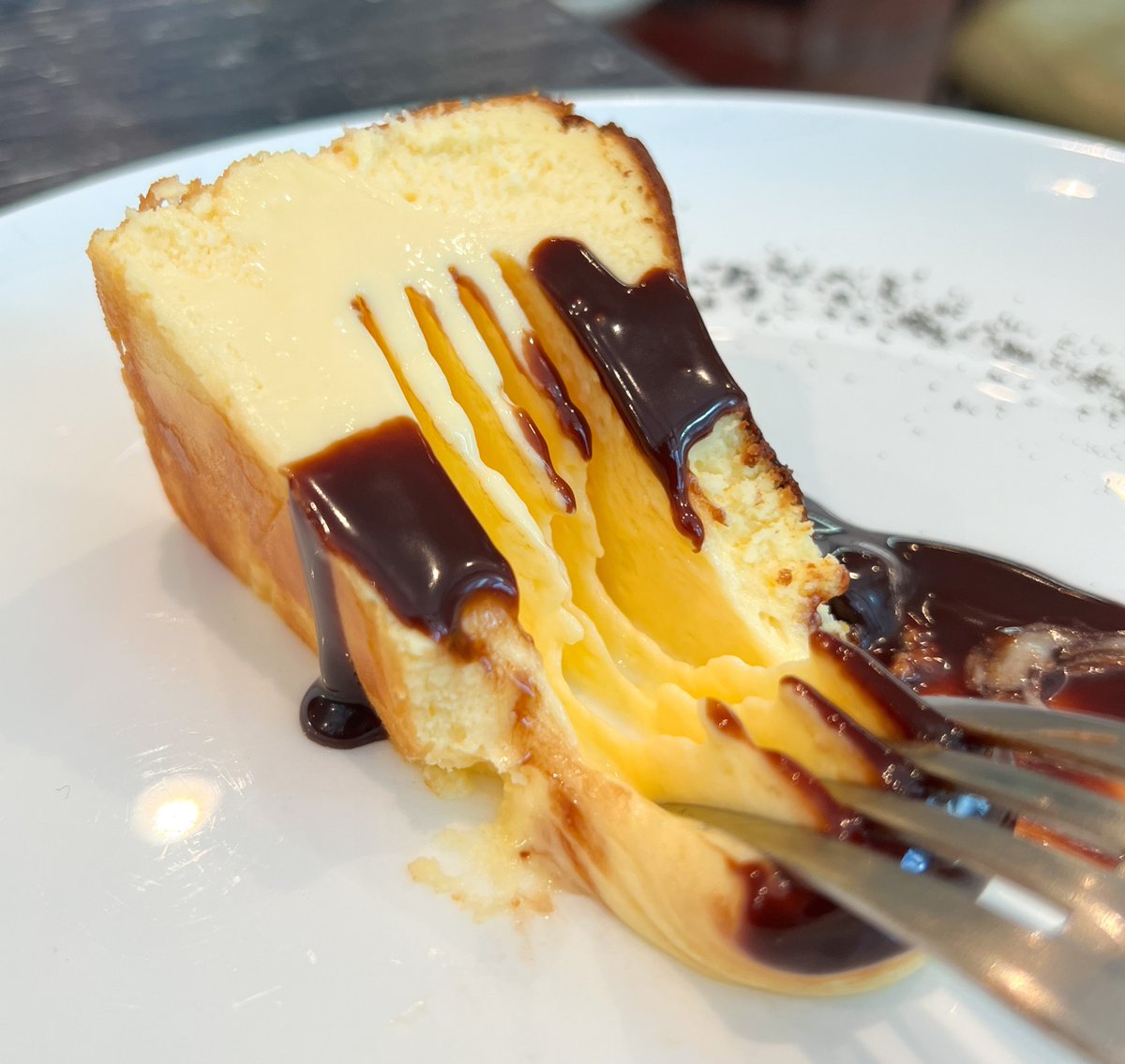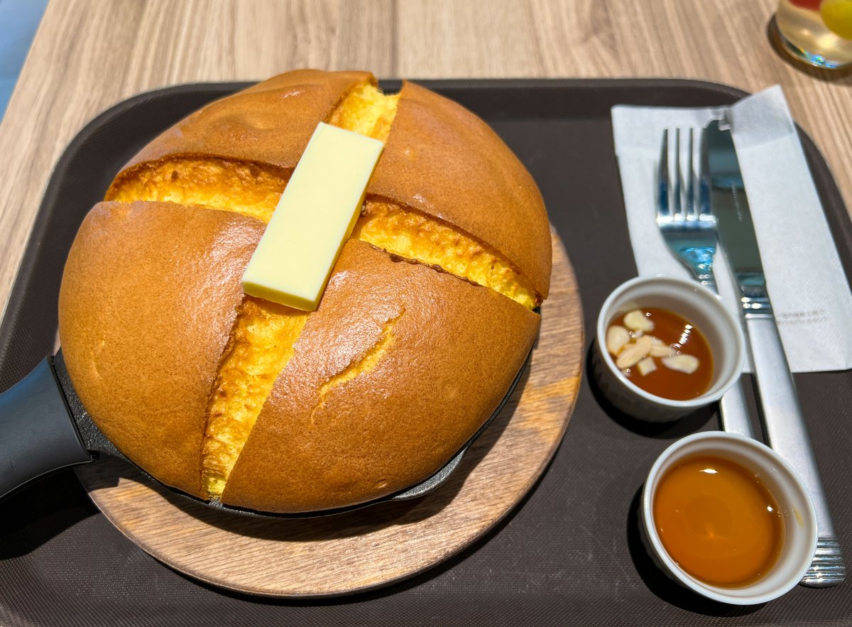 鉄板のうえでバターを溶かしてから焼き上げると香ばしい匂いが漂い、チーズの海に浸して食べると格別!