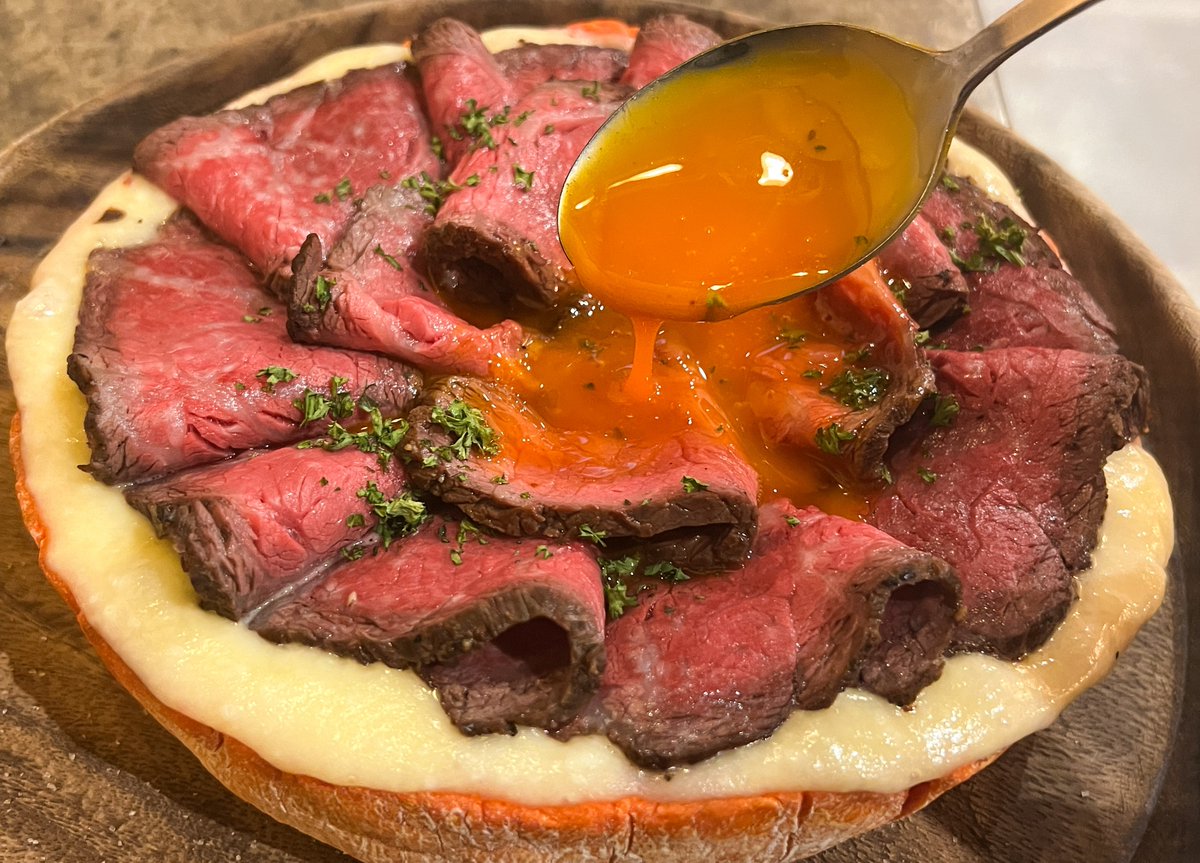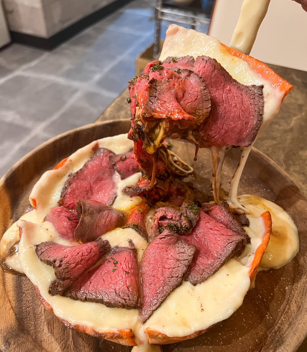 黒毛和牛ローストビーフを載せたビーフカレーシカゴピザを食べられるお店。
