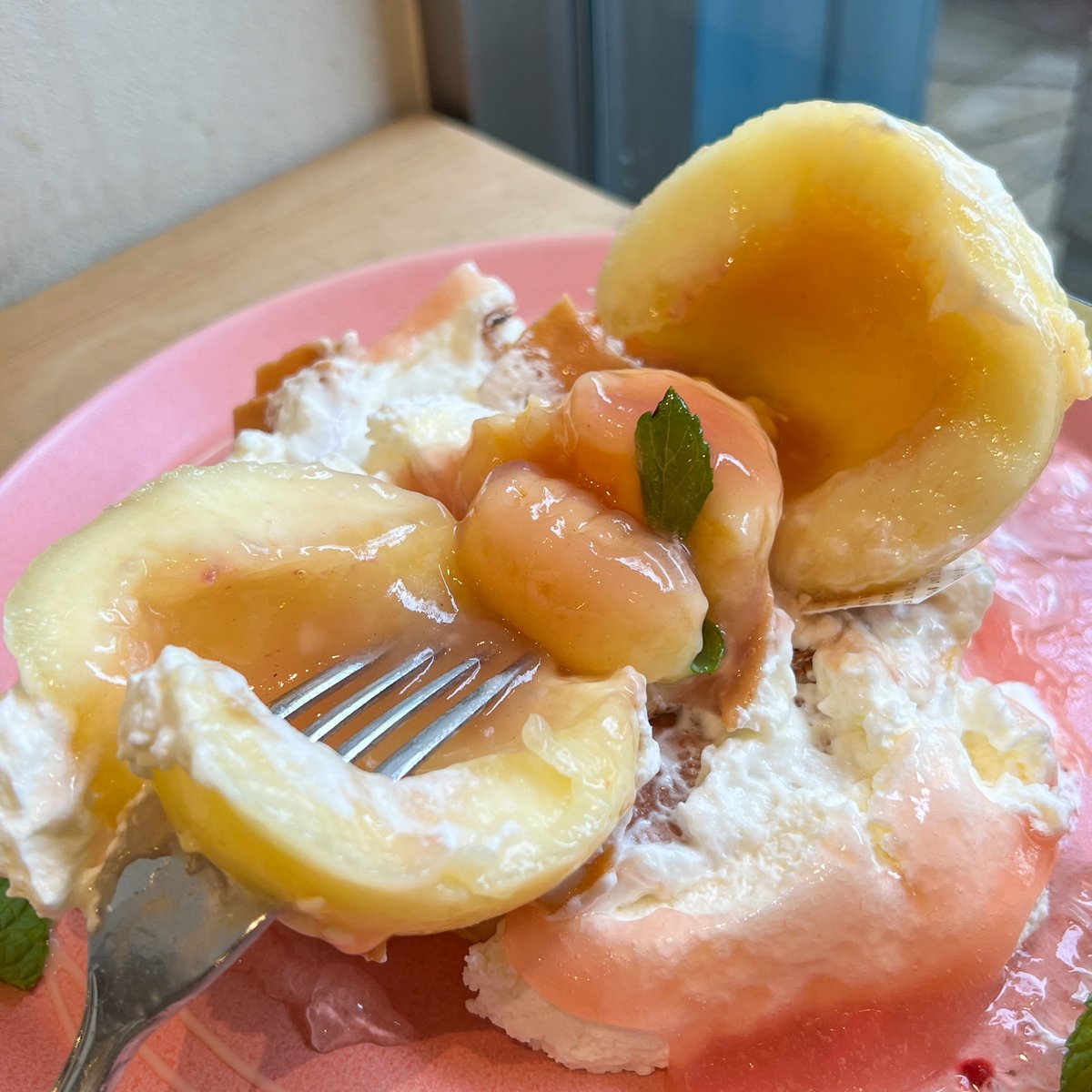 桃とクレームダンジュのパンケーキはプチサイズで1848円