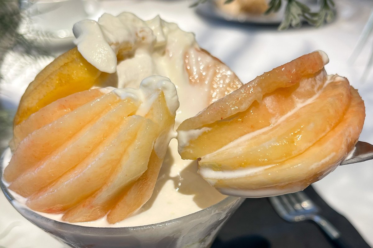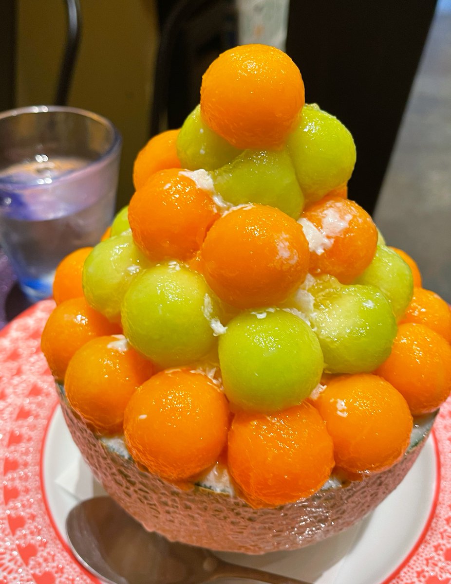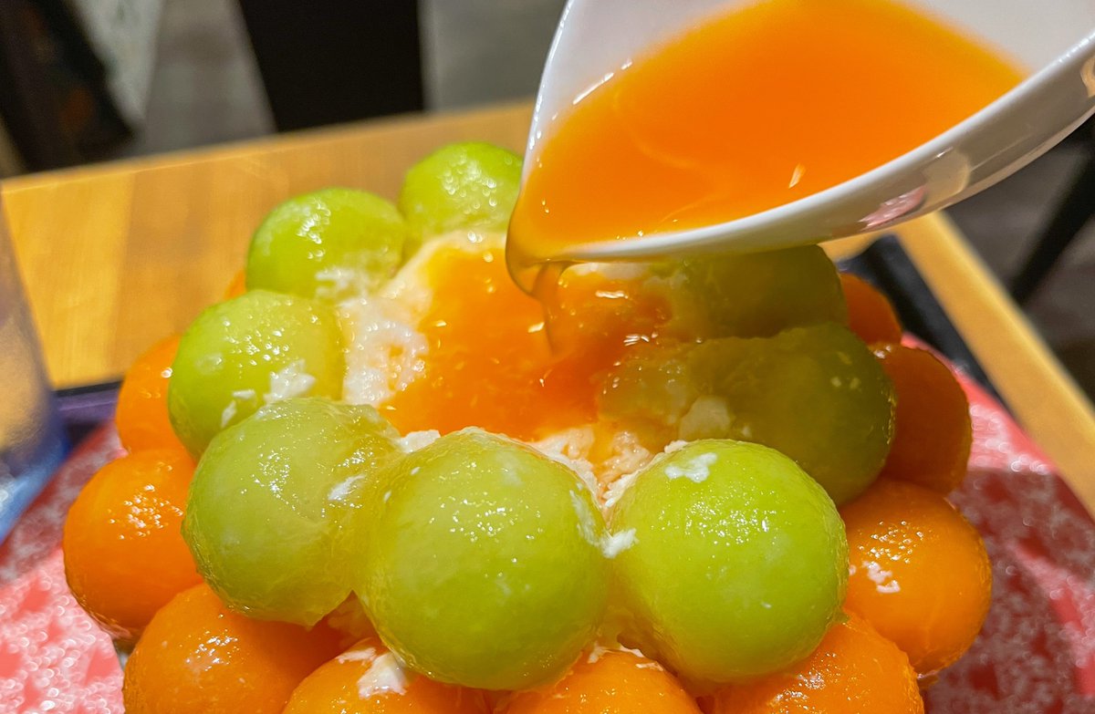 ミックス以外に青肉・赤肉のみのメロンかき氷も販売されていて、そちらも2200円になります!