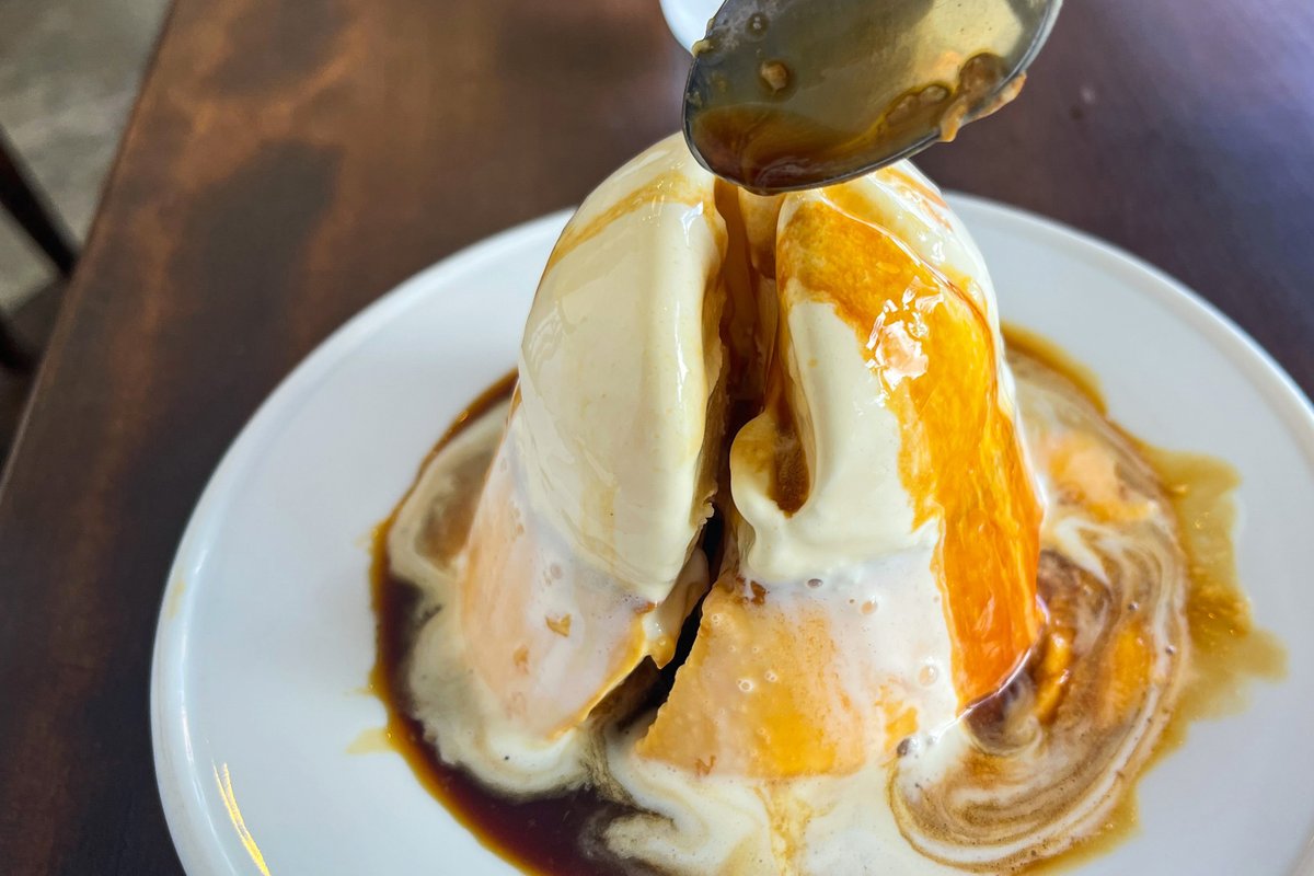 通常のプリンは500円で、店員さんにアイスのトッピング(+100円)を伝えるとプリンの上に乗せてもらえます!(メニュー表には通常のプリン(500円)しか記載がなく、アイストッピングの記載がないので注意!!)