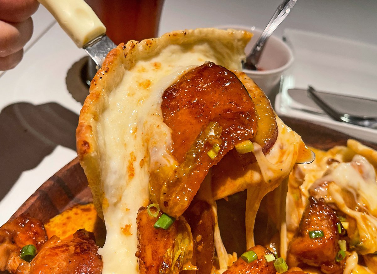 チーズタッカルビシカゴピザを食べられるお店。