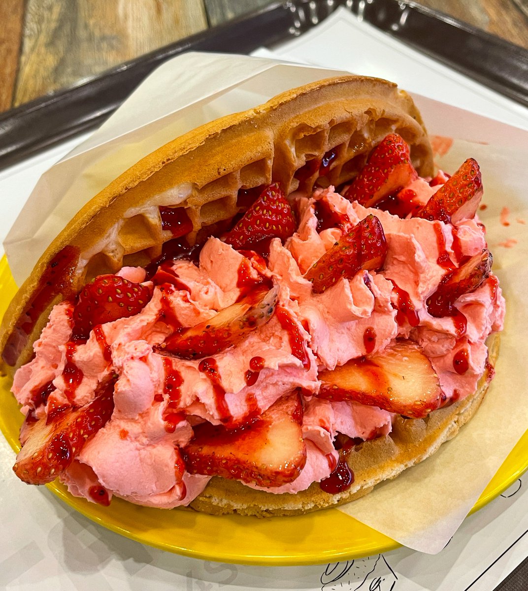ホイップクリームも添えつけられているのも嬉しいポイント。下段にいくほどサイズが大きくなっていきます!